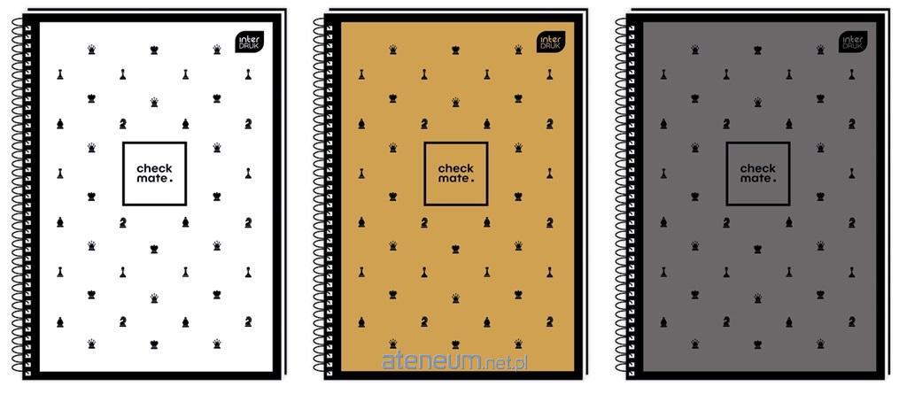 Format: A4. Liczba kartek: 80. Zadruk w kratkę. Pojedyncza spirala wkręcana po długim boku. Otwory do segregatora. Perforacja wzdłuż grzbietu, ułatwiająca wyrywanie kartek. Miła w dotyku okładka soft touch z wybiórczo lakierowanymi elementami, które są utrzymane w tematyce szachowej. Produkt wysokiej jakości.