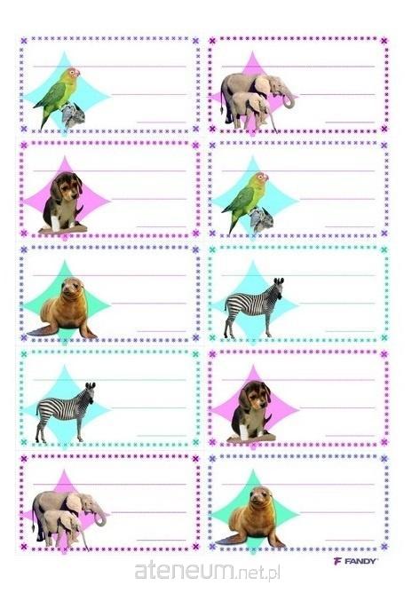 Papierowe naklejki do oznaczania zeszytów i przyborów szkolnych, arkusz zawiera 10 etykietek, rozmiar arkusza 15 x 21 cm
