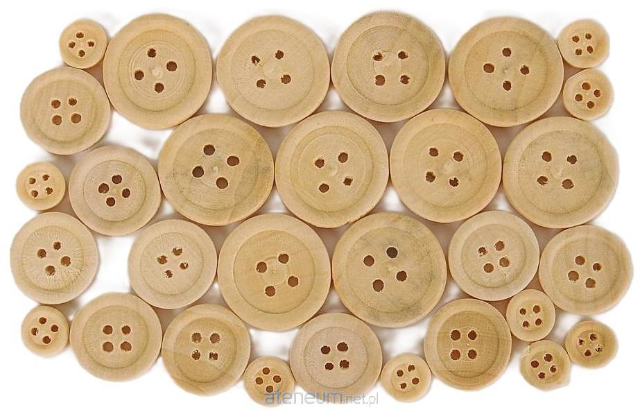 Drewniane guziki ozdobne, mix rozmiarów - 10 x 1 cm, 10 x 1,5 cm, 10 x 2 cm, w opakowaniu 30 szt.
