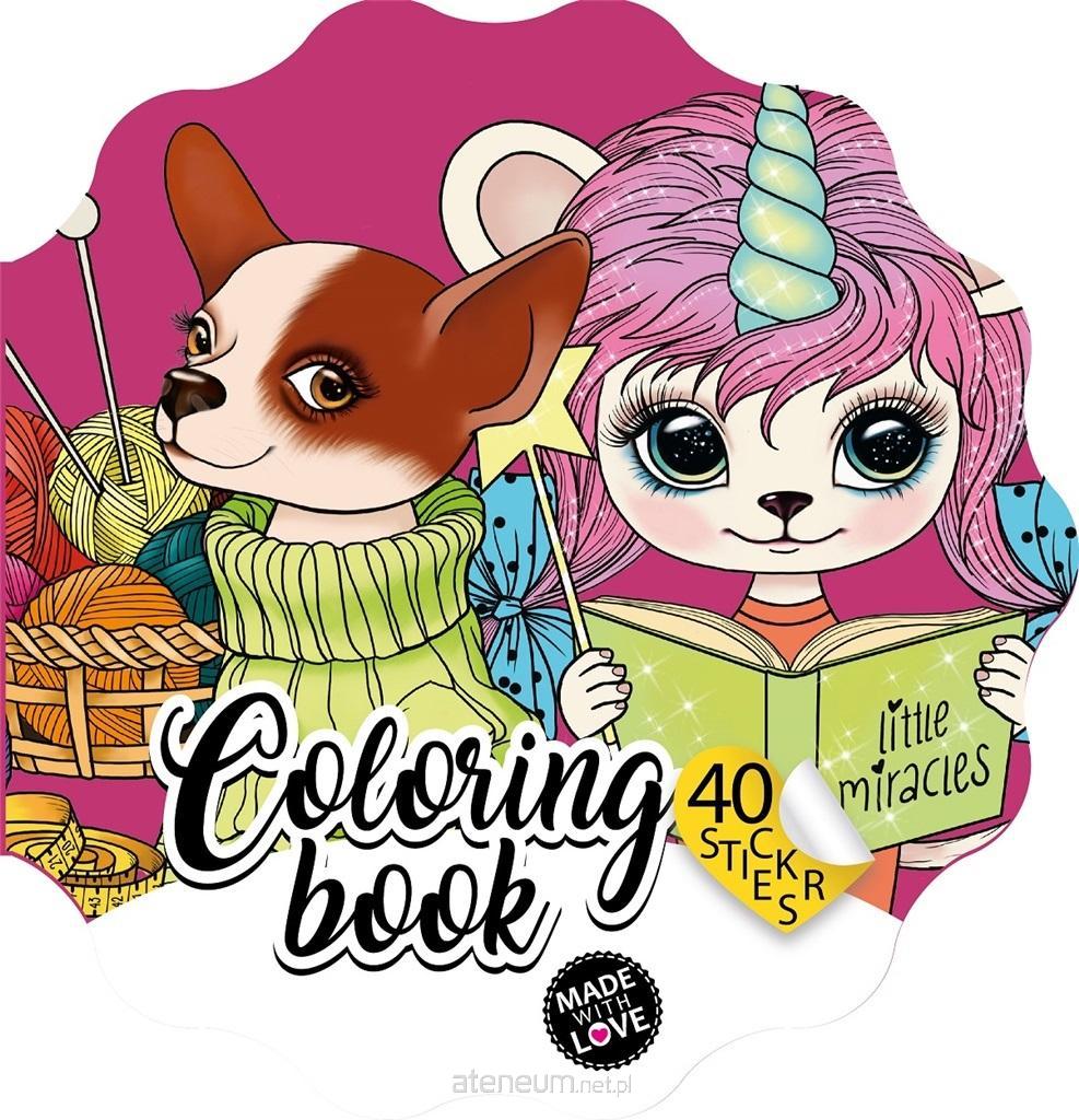 Kolorowanka dla dzieci w kształcie kwiatka, z magicznymi zwierzątkami. W zestawie 40 naklejek. Wyprodukowano na Ukrainie.