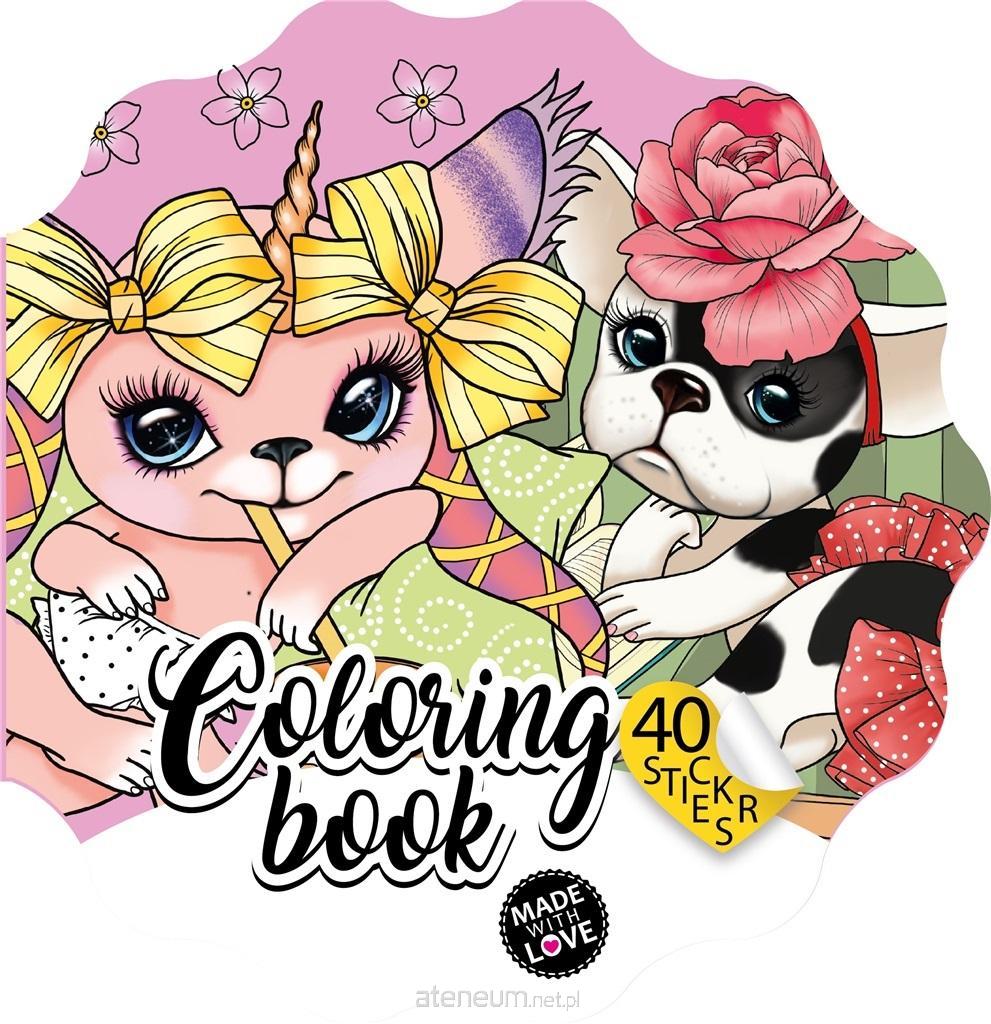 Kolorowanka dla dzieci w kształcie kwiatka, z magicznymi zwierzątkami. W zestawie 40 naklejek. Wyprodukowano na Ukrainie.