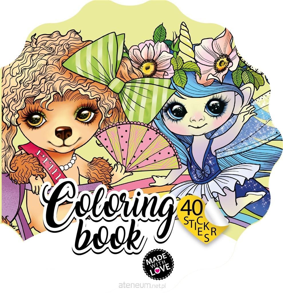Kolorowanka dla dzieci w kształcie kwiatka, z magicznymi zwierzątkami. W zestawie 40 naklejek. Wyprodukowano na Ukrainie.