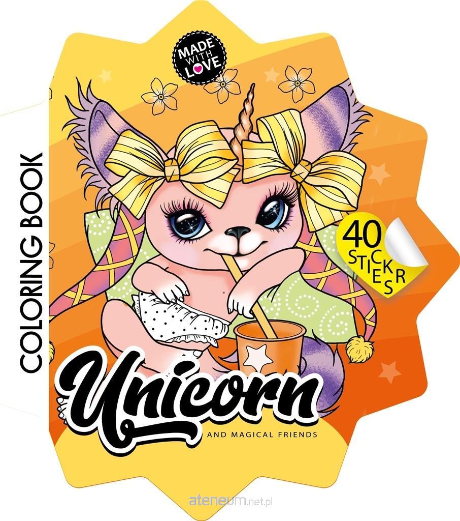 Kolorowanka dla dzieci w kształcie gwiazdki, z magicznymi zwierzątkami. W zestawie 40 naklejek. Wyprodukowano na Ukrainie.