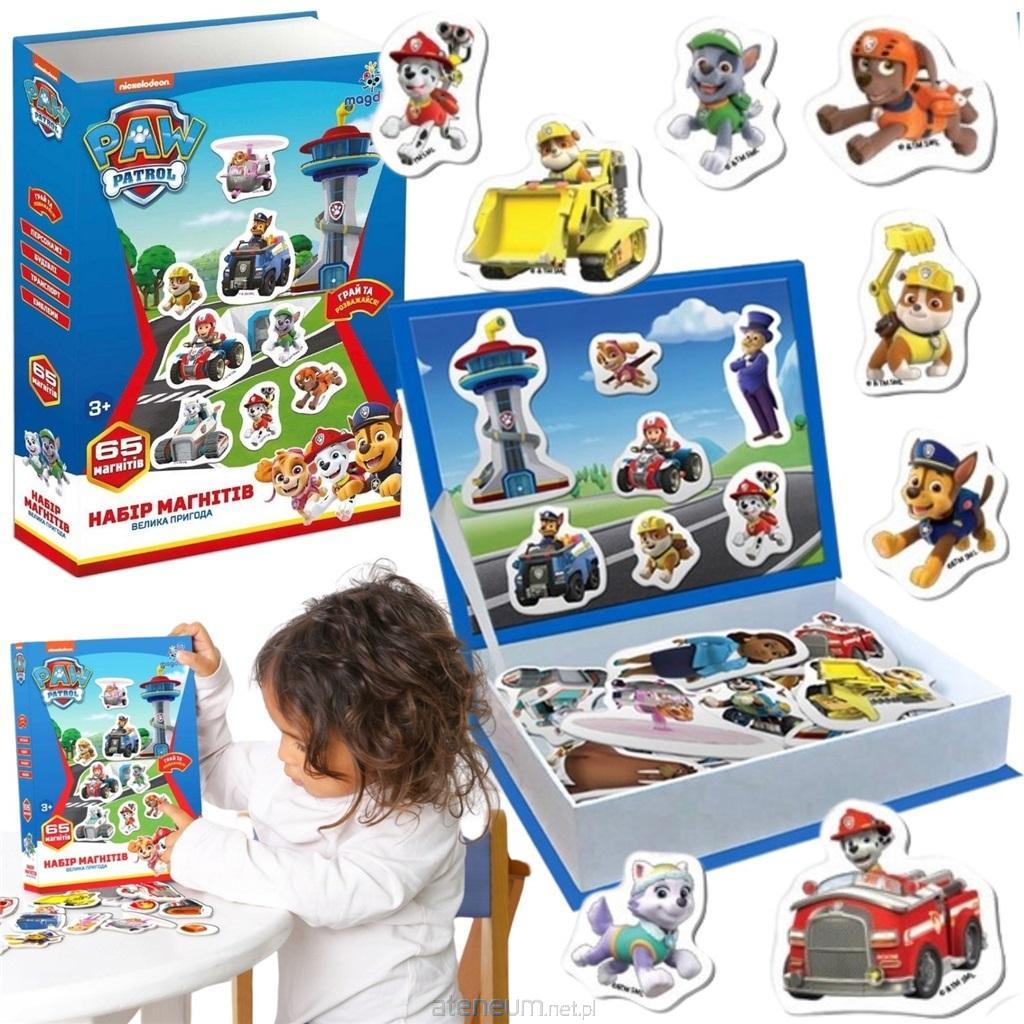 Duży zestaw magnesów Magnetyczna opowieść Psi Patrol to super prezent dla dziecka! W książeczce z polem magnetycznym znajduje się 65 magnetycznych figurek. Jak się bawić? Wybierz postacie, ich pojazdy, budynki, emblematy i umieść je na teren, wymyślanie historii! Nowy dzień - nowa gra, bo magnesów jest tyle. Zabawa figurkami rozwija koordynację ruchową, mowę, wyobraźnię, uwagę i pamięć. Zestaw możesz zabrać ze sobą na wakacje, bo wszystko czego potrzebujesz jest zawsze pod ręką. Magnesy są trwałe, wygodne dla dziecięcych dłoni i bezpieczne. Dla dzieci od 3 roku życia. Opakowanie: 65 magnesów. Rozmiar pudełka: 15 22 4,5 cm.