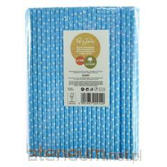 Słomki papierowe niebieskie w białe kropki 144szt