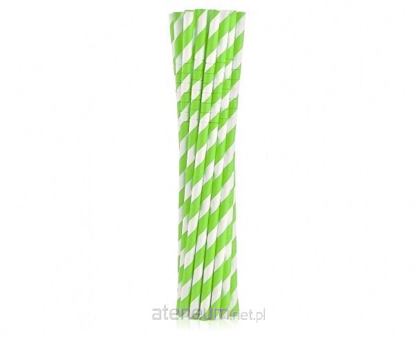 Rurki słomki pap. łamane zielone paski 20cm 12szt