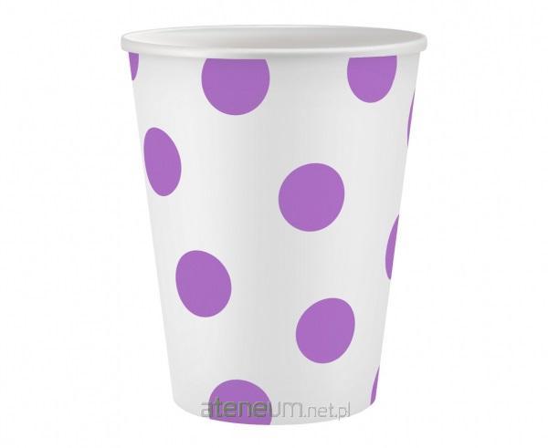 "KUBECZKI PAPIEROWE W GROSZKI Pojemność: 250 ml Materiał: Papier Kolor: Biały Nadruk: Lawendowe groszki Ilość sztuk w opakowaniu: 6 Producent: GoDan S.A. "