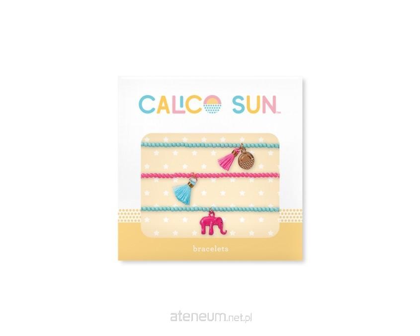 Trzy bransoletki z różowych i miętowych koralików nawiązują do siebie kolorystycznie. Jedną z nich ozdabia zawieszka z różowym słoniem, a dwie pozostałe słodkie frędzelki. Przy jednej z nich pojawia się akcent złota, czyli zawieszka z logo Calico Sun. Wszystkie 3 bransoletki są na elastycznych gumkach, dzięki czemu łatwo jest je założyć na rączkę. Aby uzupełnić swój look możesz połączyć je z Naszyjnikiem Zoey - Słoń.