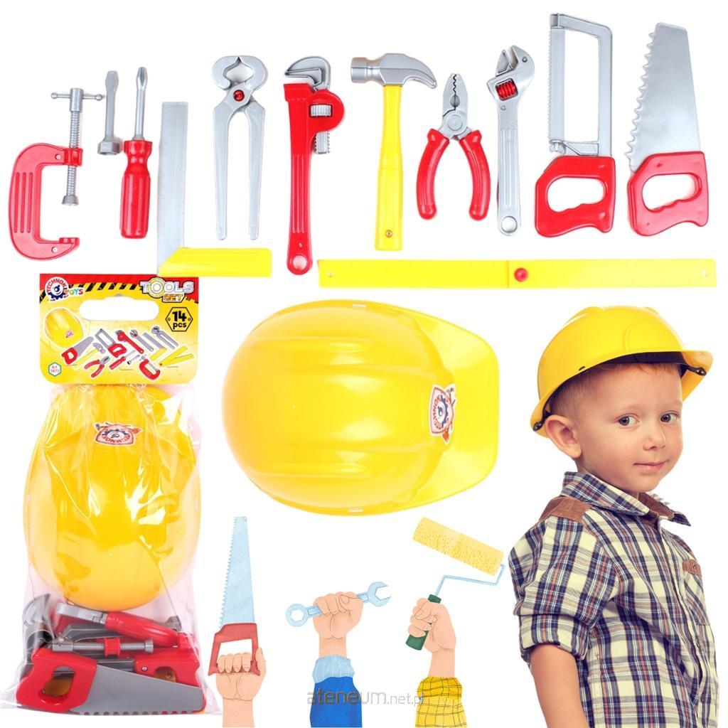 W zestawie 12 narzędzi m. in.: klucz nasadowy, piła do metalu i piły do drewna, młotek, śrubokręt z dwiema końcówkami - kształtowymi i płaskimi.