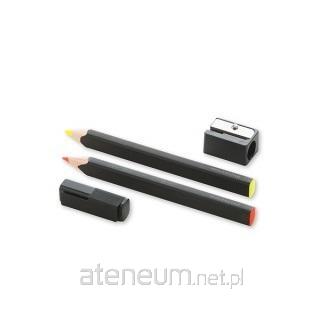 Dwa ołówki - zakreślacze Moleskine wykonane z drewna lipowego. Kolorowy, fluorescencyjny grafit w kolorze pomarańczowym i żółtym. Specjalna nasadka z klipsem umożliwia przyczepienie do okładki notesu.