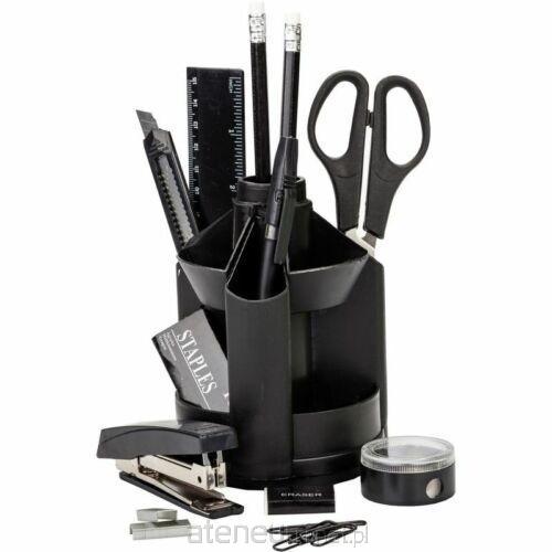 Praktyczny przybornik na biurko, który pomieści niezbędne przybory biurowe. Wykonany z wytrzymałego tworzywa w kolorze czarnym.
