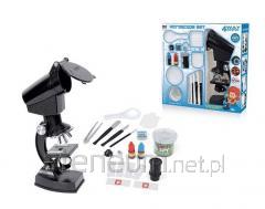 Prezentowane urządzenie będzie doskonałą pomocą w nauce przyrody i biologii. Akcesoria znajdujące się w zestawie są gwarancją udanej, a przede wszystkim rozwijającej zabawy. Konstrukcja zabawkowego urządzenia umożliwia wykorzystywanie światła zarówno dziennego, jak i wbudowanego w mikroskop. Górna część mikroskopu obraca się o 360 stopni, natomiast w uchwycie znajdują się trzy obiektywy z powiększeniem 80-krotnym, 200-krotnym i 450-krotnym. W przedniej części stolika umieszczono obrotowy dysk z czterema filtrami, zmieniającymi kolor próbek. Kolejnym atutem zabawki jest regulowane powiększenie lunety.