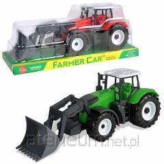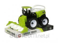 Zabawka kombajn, z maszyną oraz z przyczepą którą można swobodnie montować i odmontowywać od pojazdu.