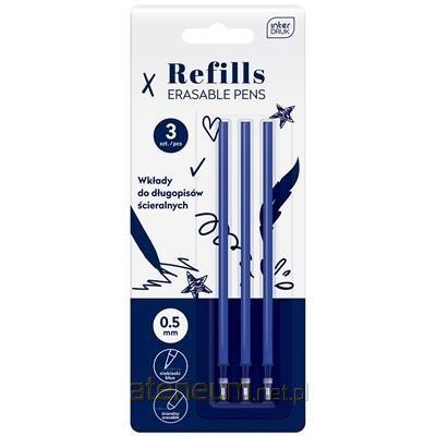 Zestaw 3 szt. wkładów do długopisów ścieralnych. Niebieski kolor. Kompatybilne z długopisami ścieralnymi Interdruk: BEBE, Boho, Cute Fruits, Cute Girl, Fray, Galaxy, Game Over, Pastel, Satin Gold.