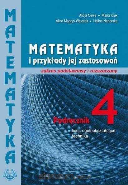 Książka " Podręcznik 4" z serii "Matematyka i przykłady jej zastosowań" zakres podstawowy i rozszerzony jest adresowany do uczennic i uczniów klasy czwartej liceum ogólnokształcącego oraz klasy czwartej i piątej technikum, którzy ukończyli ośmiletnią szkołę podstawową.