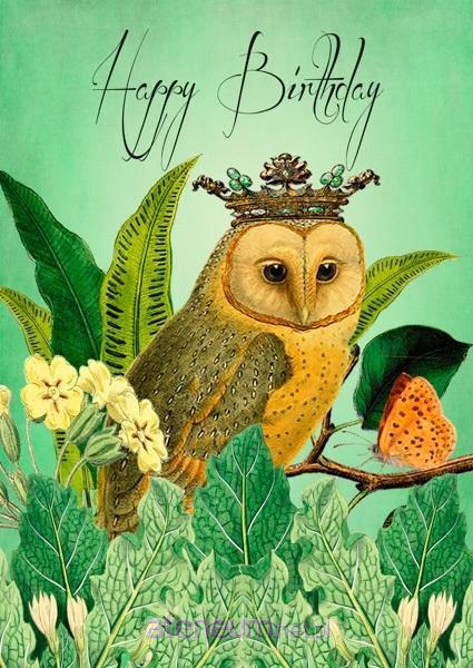 HB218 Karnet B6 z kopertą Urodziny Sowa w koronie, wyprodukowany w Wielkiej Brytanii.