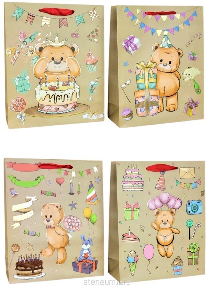 Torebka prezentowa dziecięca L Miś sportowiec mix