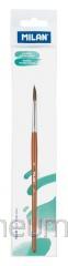 Szkolny okrągły pędzel serii 101 nr 10 z krótkim drewnianym trzonkiem. Skład: 70% naturalnego włosia koziego + 30% syntetyczne. Brązowe lakierowane wykończenie i aluminiowa skuwka bez spawania, odporna na rdzewienie. Bardzo miękkie włosie idealne do akwareli, technik wodnych i farb plakatowych. Lepsze zatrzymanie wody i farby. Gładsza linia. Lepsza odporność i elastyczność, co ułatwia odzyskanie kształtu po jego użyciu. Średnica włosia: 5,2 mm. Długość włosia: 23,6 mm. Długość pędzla: 195 mm.