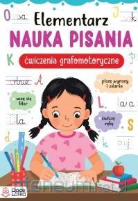 Elementarz grafomotoryczny. Nauka pisania wspomaga rozwój sprawności ręki i koordynacji wzrokowo-ruchowej niezbędnej przy nauce pisania, wprowadzająca poszczególne litery, ucząca sposobu i kierunków pisania liter wielkich i małych, dwuznaków, łączenia liter oraz utrzymywania pisma w wyznaczonych liniach.