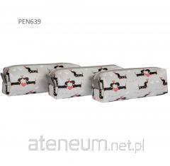 Etui tekstylne z 2 komorami i 2 zamkami błyskawicznymi, powierzchnia zmywalna z nadrukiem, wymiary piórnika 21,5 x 5 x 9,5 cm (szer. x wys. x gł.), bez wyposażenia
