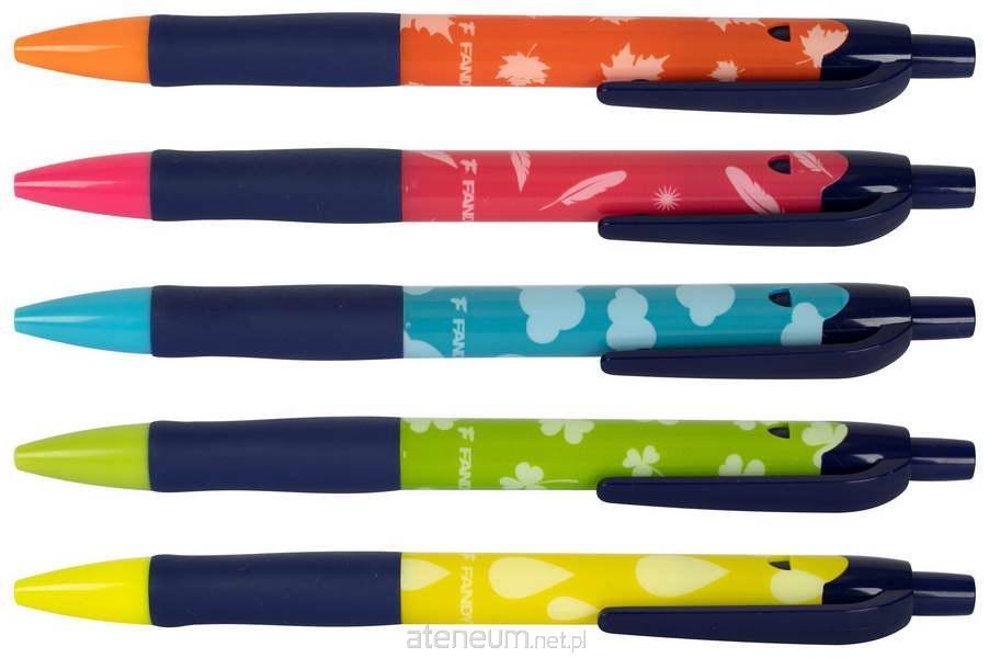 Plastikowy długopis, automatyczny, ergonomiczna obudowa z uchwytem antypoślizgowym, wymienny wkład F-411, niebieski kolor tuszu, grubość linii 0,7 mm, miks kolorów w opakowaniu zbiorczym