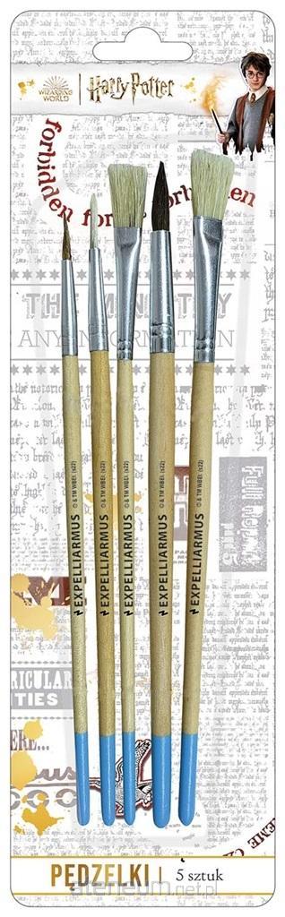 Komplet pędzelków z naturalnego włosia w różnych rozmiarach. 5 sztuk w paczce, motyw: Harry Potter.