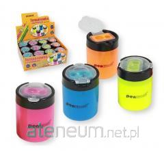 Dzięki przegubowemu otwieraniu pojemnik nigdy się nie zgubi stanowi integralną część z temperówką. 3 wersje kolorystyczne: czerwono-niebieska, zielono-różowa i niebiesko-zielona, wybierane losowo. Blister. JS.: 1 szt.