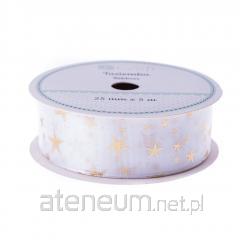 Tasiemka White Christmas 25mmx5m Gwiazdki