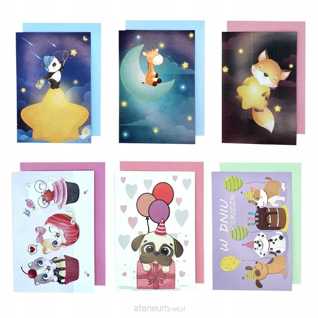 Karnet B6 z naklejką. Życzenia (10szt) MIX