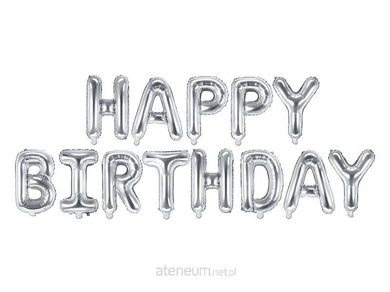 Balon foliowy metalizowany Happy Birthday w kolorze srebrnym, wymiary ok. 340 x 35 cm (134 x 14'').