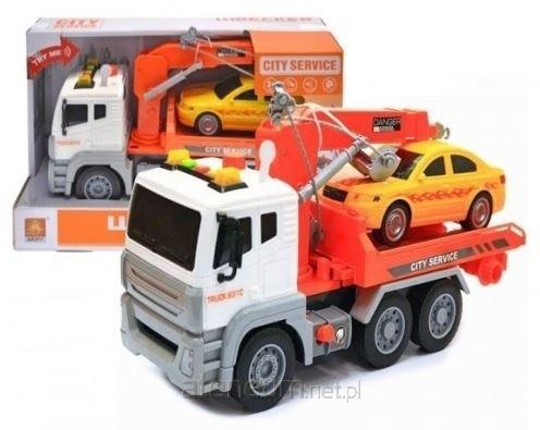 Laweta z samochodem pomoc drogowa światło dźwięk