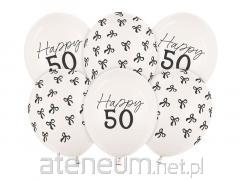 Balony Strong happy birthday z białym pięciostronnym nadrukiem, w kolorze Pastel Baby Pink, średnica 30 cm.(1 op. / 6 szt.)