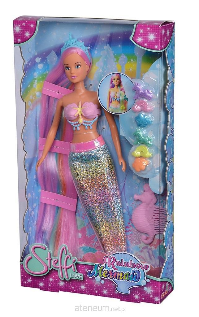 Syrena Steffi ma kolorowe włosy, dużo spinek, grzebień, a ogon można zdejmować. Wysokość lalki: 29 cm.