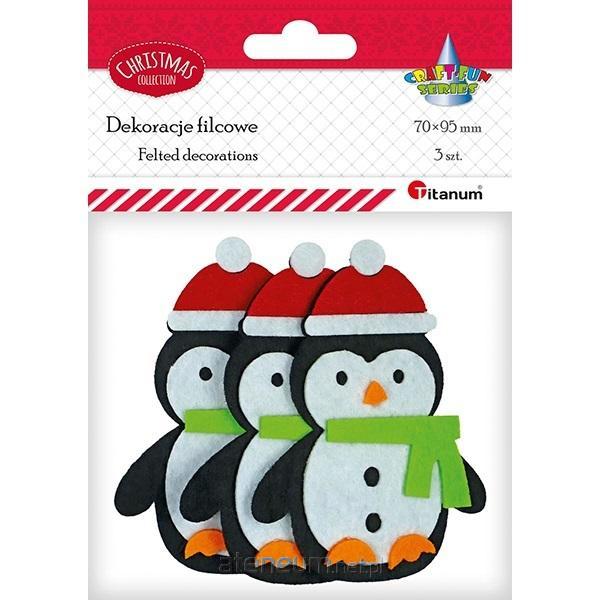 Filcowe pingwiny 3D w czapkach Mikołaja 70x95mm 3szt.