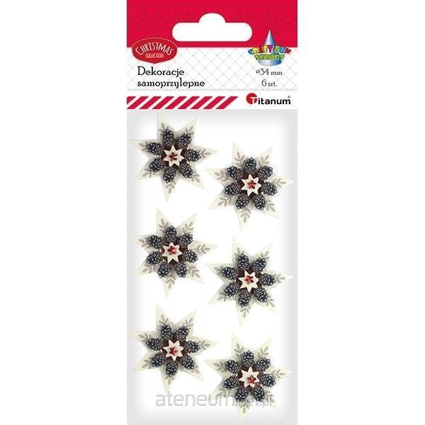 Dekoracje samoprzylepne papierowo-foliowe 3D świąteczne gwiazdy z szyszkami 34mm 6szt.