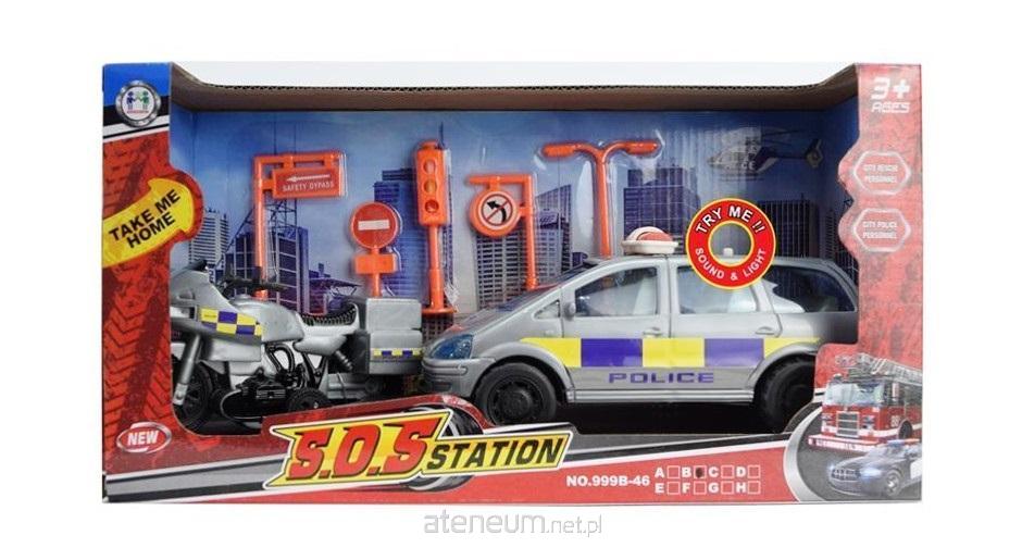 Plastikowy zestaw pojazdów policyjnych dla dzieci. Teraz żaden złodziej się nie wywinie! W zestawie: policyjny wóz, motor oraz znaki drogowe. Produkt zapakowany w kartonowe opakowanie z przezroczystym okienkiem. Podane wymiary są wymiarami opakowania.