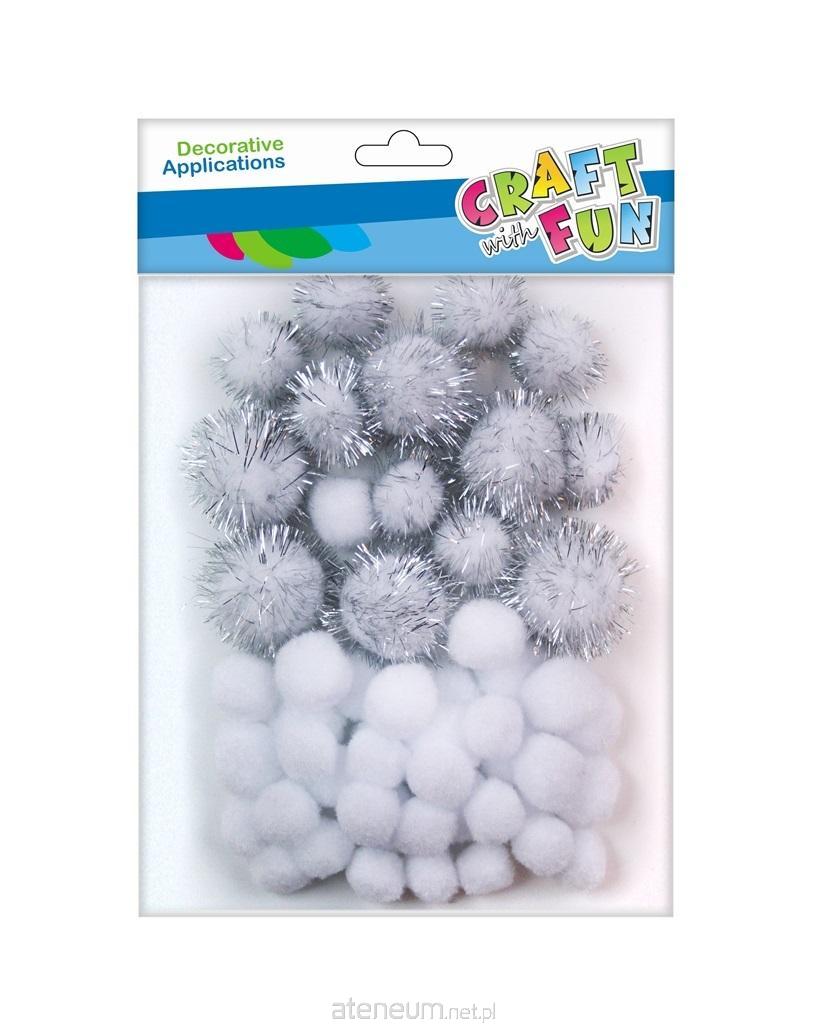 Pompony białe/brokatowe 50szt