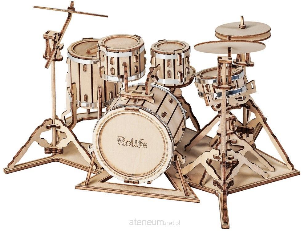Drewniane puzzle 3D w kształcie perkusji. Zestaw został wykonany z wysokiej jakości sklejki i jest w postaci arkuszy z wstępnie wyciętymi i ponumerowanymi elementami, które przed montażem należy oddzielić od wykroju, a następnie połączyć bez użycia klej, zgodnie ze szczegółową instrukcją dołączoną do opakowania. Dzięki wykorzystaniu nowoczesnej technologii obróbki drewna, model charakteryzuje duża ilość detali, a jego budowa jest ciekawym doświadczeniem (montaż wybranych elementów może wymagać użycia kleju do drewna- zestaw nie zawiera kleju).