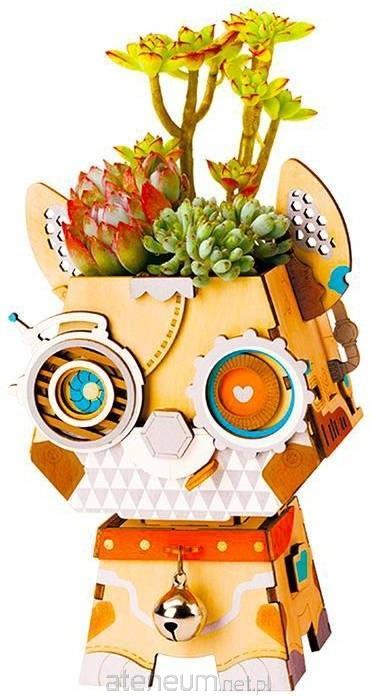 Kolorowa doniczka do samodzielnego złożenia, wykonana z wysokiej jakości sklejki. Zestawy mają postać arkuszy z wstępnie wyciętymi i ponumerowanymi elementami, które przed montażem należy oddzielić od wykroju, a następnie połączyć zgodnie ze szczegółową instrukcją dołączoną do opakowania. Do modelu dołączony jest plastikowy pojemnik na rośliny oraz plastikowa taca zapobiegająca wyciekom wody podczas podlewania.
