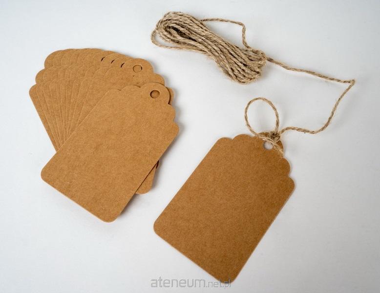 12 zawieszek o wymiarach 9 x 5,5 cm, sznurek do zawieszenia