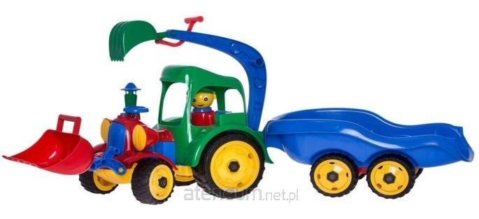 Koparka to zabawka, o której marzy każdy chłopiec. Posiada gumowe koła, wyposażona jest w dwie ruchome łyżki, a kierownica pozwala na skręcanie przedniej osi. Nasza koparka wyróżnia się dużą wytrzymałością, bajkowym kształtem i intensywną kolorystyką. Tego kierowcę, który siedzi w kabinie chcą mieć wszystkie dzieci. Razem z przyczepą ma ponad 86 cm długości.