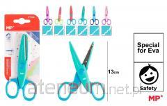 Dla dzieci od 2 lat. Lekkie, z zaokrąglonym ostrzem. Tylko do cięcia papieru (nie tną włosów, tkanin). Rozmiar 10 cm. Model dla praworęcznych. Do użytkowania pod nadzorem osoby dorosłej. Produkt na blistrze.