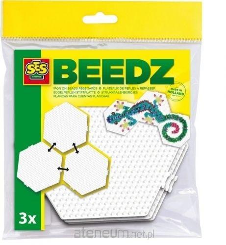 Specjalna podstawka z wypustkami do ułożenia mozaiki z koralików w sześciokątnym kształcie. Po ułożeniu koralików na szablonie, można przeprasować je przez pergamin aby otrzymać trwały obrazek. W opakowaniu trzy sztuki.