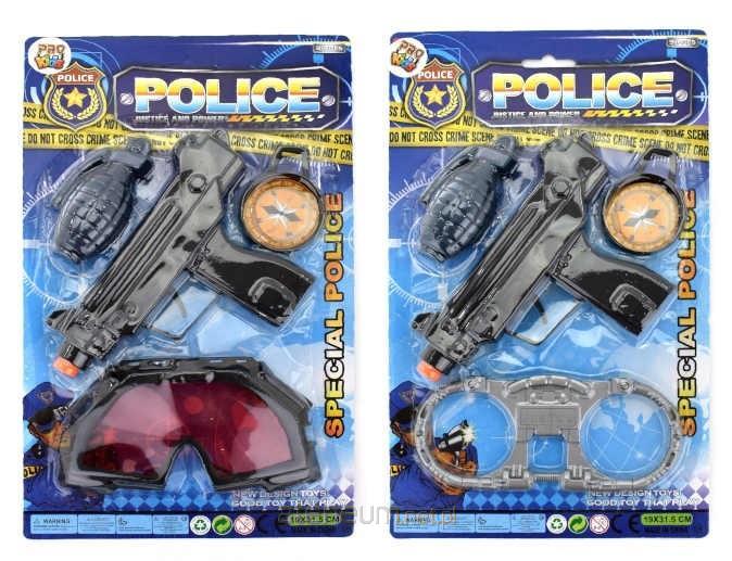 Zestaw akcesoriów dla małego policjanta, wykonane z plastiku.