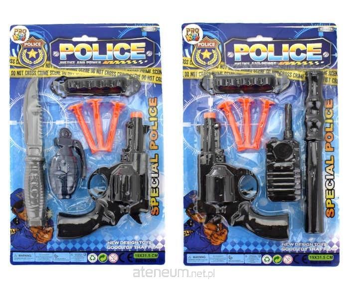 Zestaw akcesoriów dla małego policjanta, wykonane z plastiku.