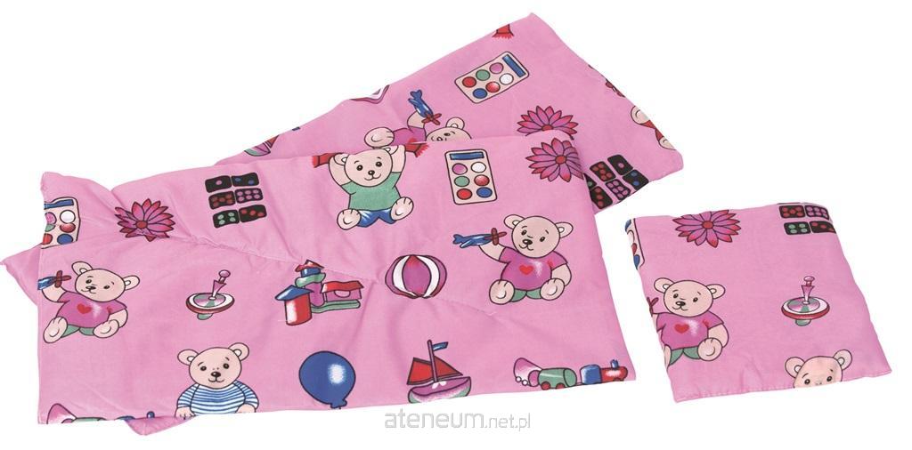 Zestaw kolorowej pościeli do łóżeczek i kołysek dla lalek składający się z: materacyka 56x24cm, kołderki 49x27cm, poduszki 21x20cm. Dostępny w różnych wariantach kolorystycznych.