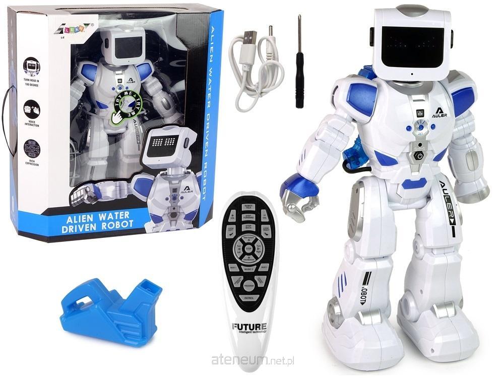 Inteligentny Interaktywny Robot Zasilany Wodą ! Zdalnie Sterowany ! Water Alien Robot Zdalnie sterowany robot przybył z przyszłości, by umilić czas swojemu właścicielowi. Water Robot to propozycja dla małych i dużych dzieci lubiących nowinki techniczne. Zabawka Water Robot interaktywny potrafi chodzić do przodu i tyłu, ślizgać się, obracać głową, a nawet tańczyć. Dzięki tylu funkcjom zapewni wiele godzin niesamowitej, kreatywnej zabawy! Water Robot na pilota posiada wbudowany akumulator ładowany przez np. komputer przy pomocy dołączonego kabla USB. Akumulator znacznie obniży koszty eksploatacji, a także pozwoli dłużej cieszyć się zabawką. Aby w pełni korzystać z funkcji robota, należy zapewnić mu dodatkowe źródło energii czyli wodę. Wodę należy nalać do zbiornika znajdującego się na plecach kosmicznego robota. UWAGA! Należy używać wody bieżącej, nie wolno wlewać wody mineralnej. Zbiornik należy napełniać przy pomocy dołączonego lejka, tak by nie zalać korpusu robota. Poziom wody nie powinien opaść poniżej minimum zaznaczonego przerywaną linią na zbiorniku. Na tułowiu robota z przodu znajduje się przycisk on /off, który uruchamia zabawkę. Po włączeniu zabawki twarz zaświeci się w technologii LED. Zmieniające się świecące diody świetnie wyrażają emocje i odwzorowują mimikę. Sterowany Water Robot uprzejmie przywita się z Tobą i można zacząć zabawę. Funkcje robota: - chodzi, - jeździ, - zmienia kierunek, - obraca głowę lewo i prawo, - tańczy, - mówi językiem robotów, - reaguje na brawa, - patroluje. Dane techniczne: - robot zasilany na akumulator 3,7V Li - czas ładowania ok. 4 godziny - zasięg pilota do 10m - wymiar robota ok. 38cm x 14cm x 12cm - waga robota ok. 0,7kg Funkcje pilota: - uruchomienie mowy robota, - zwiększanie i zmniejszanie poziomu głośności, - obrót głowy w prawo, w lewo - chodzenie w przód i w tył, - jazda w przód lub w tył, - zmiana kierunku jazdy prawo lub lewo , - STOP, - 3 układy taneczne do wyboru, - programowanie, - włączenie funkcji PATROL. Zestaw zawiera: - robot, - akumulator (wbudowany), - pilot zdalnego sterowania, - ładowarka USB. Zasilanie Robot zasilany jest akumulatorem (w zestawie) Pilot zasilany jest baterią 2 x 1,5V AAA (brak w zestawie) Zabawka w j. angielskim. Kosmiczny Water Robot jest towarzyski i uwielbia wchodzić w interakcje np. po wykonaniu tańca prosi o oklaski. Brawa na pewno zachęcą go do dalszych występów. Zestaw zapakowany w efektowne opakowanie, świetnie sprawdzi się jako prezent dla każdego fana nowinek technicznych.