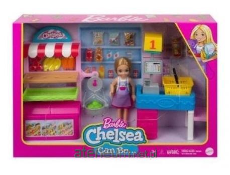Barbie Chelsea sklepik + lalka GTN67 Mattel z serii Can Be... to świetny sposób na zabawę w sklep. Chelsea ubrana w uroczy fartuszek, nałożony na koszulkę i spódniczkę zaprasza do swojego kramiku z przysmakami. Zestaw zawiera aż 15 różnych akcesoriów wzbogacających opowiadane historie: koszyk na zakupy, kasę i stoisko z przekąskami, owoce, warzywa i różne przysmaki. Jak w prawdziwym sklepie warzywa można zwarzyć. Na stanowisku z kasą Chelsea podliczy wszystkie zakupy i pomoże je spakować.