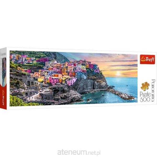 Puzzle panoramiczne składające się z 500 elementów przedstawiające włoskie miasto Vernazza o zachodzie słońca. Po ułożeniu powstanie obrazek o wymiarach 660 x 237 mm. Produkt został wykonany z wysokiej jakości materiałów, z zastosowaniem specjalnego kalandrowanego papieru odbijającego światło, co ułatwia układanie.