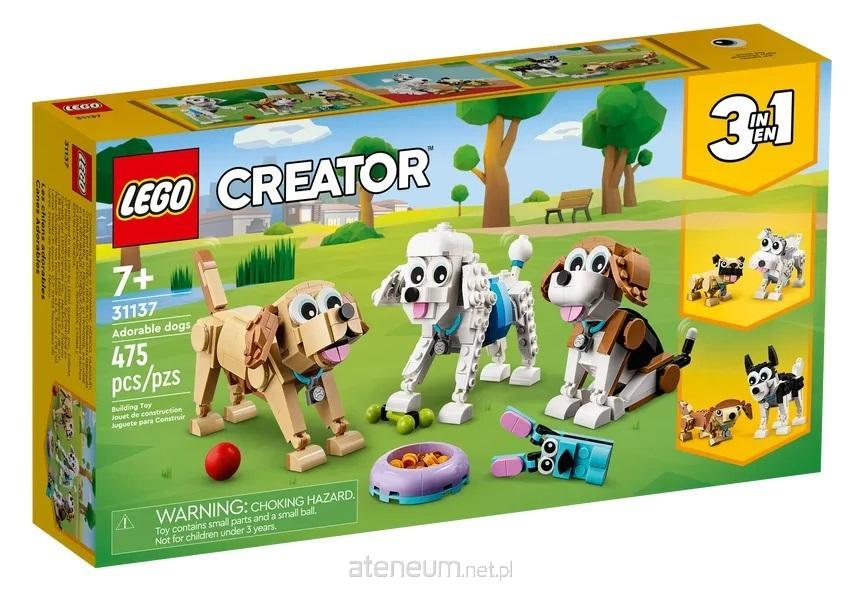 Miłośnicy psów i dzieci w wieku od siedmiu lat mogą bawić się uroczymi pieskami z zestawu LEGO® Creator 3 w 1 Urocze psiaki (31137). Zawiera on beagle'a, pudla i labradora z ruchomymi głowami, ogonkami i uszami, a także akcesoria, w tym miskę, szczotkę, zabawkowego królika, piłkę i smycz, aby urozmaicić wymyślane przez dzieci historie.